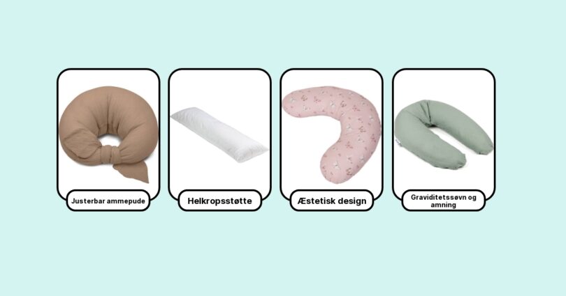 Der findes mange slags ammepuder: Den klassiske bananformede pude, den store, bløde “donut”-pude og ergonomiske puder formet efter kroppen. Nogle er fyldt med mikrokugler for fleksibilitet, mens andre har formstabilt skum, der støtter ekstra godt. Personligt foretrækker jeg puder med en fast, men blød kerne, som hverken bliver for flad eller for hård over tid. Det er vigtigt at overveje, hvordan du bedst vil bruge puden, for at finde en model der passer til dit behov.