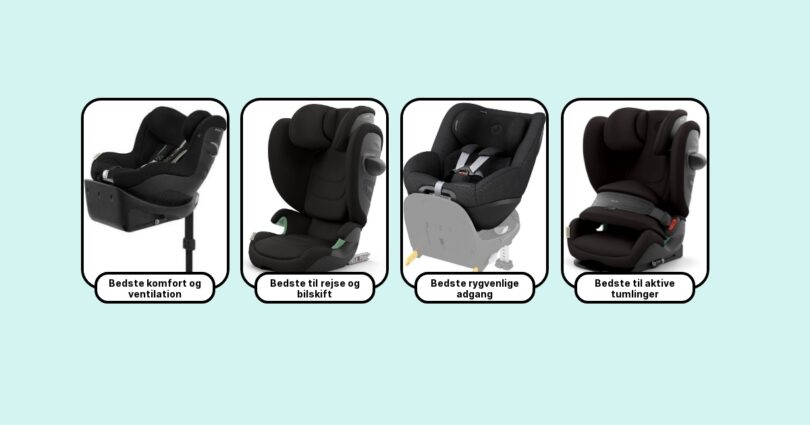 - Cybex Sirona S i-Size – Roterende base, nemt ind/ud, testvinder i flere lande.