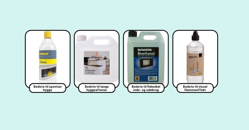 Gennem mine erfaringer og test af adskillige brands, har jeg fundet frem til de 7 bedste bioethanol-produkter på markedet lige nu: Decoflame Bioethanol, Fritab Bioethanol, Vauni Premium, Vestfyen Ren Bioethanol, Kosan Bioethanol, Happy Cocooning, samt Nordlys Bioethanol. Fælles for disse er, at de leverer konsistent høj kvalitet, indeholder 95-97,5% ethanol og er så rene, at du ikke oplever ubehagelig lugt. Alle syv produkter har desuden dokumenteret sikkerhed og er velegnede til brug i alle typer biopejse. Jeg anbefaler at vælge ud fra, hvad der er lettest tilgængeligt og økonomisk fordelagtigt for dig – men prioritér altid kvalitet over pris.