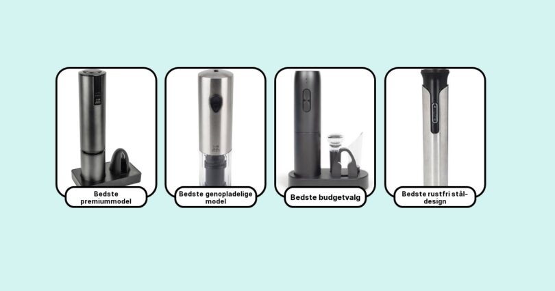 Gennem test og samtaler med vinentusiaster har jeg fundet syv modeller, som skiller sig ud: 1) Oster Cordless Electric Wine Bottle Opener, 2) Cuisinart Electric Wine Opener, 3) Peugeot Elis Touch, 4) OBH Nordica Vinoplukker, 5) Flauno Electric Wine Opener, 6) Xiaomi Rechargeable Electric Wine Opener og 7) Pulltex Pulltap’s Electric. De spænder bredt i pris, design og funktioner, men har alle det til fælles, at de er pålidelige, brugervenlige og leverer et flot resultat. Flere af dem har desuden vundet tests eller fået ros af vinelskere verden over.