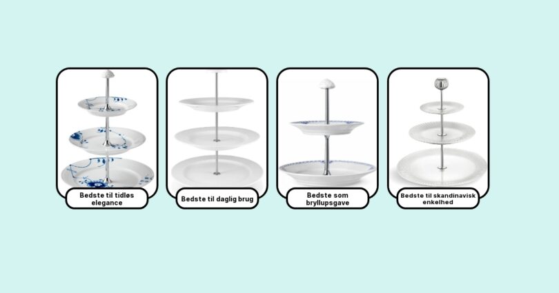 Til større selskaber eller afternoon tea er et kageetagefad det perfekte valg. Jeg har tit brugt et 3-lags etagestativ, hvor små kager, scones og cupcakes får hver deres plads. Det både pynter og sparer bordplads. Vælg et stabilt etagestativ, gerne i porcelæn, for det flotteste udtryk.