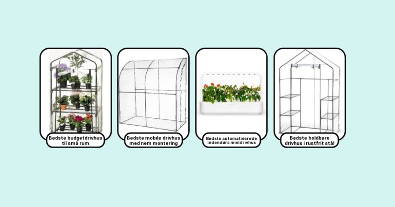 Efter at have afprøvet utallige modeller og talt med både nybegyndere og erfarne havefolk, vil jeg anbefale følgende syv: Juliana Minidrivhus, Vitavia IDA, IKEA SOCKER, Halls Wall Garden, Bio Green City Jungle, Elho Green Basics og Nelson Garden Rootmaster. De udmærker sig hver især på kvalitet, design, holdbarhed og pris – så du kan finde det helt rigtige til netop dit behov. Jeg har især haft stor succes med Juliana på grund af det robuste glas og mulighed for god ventilation.