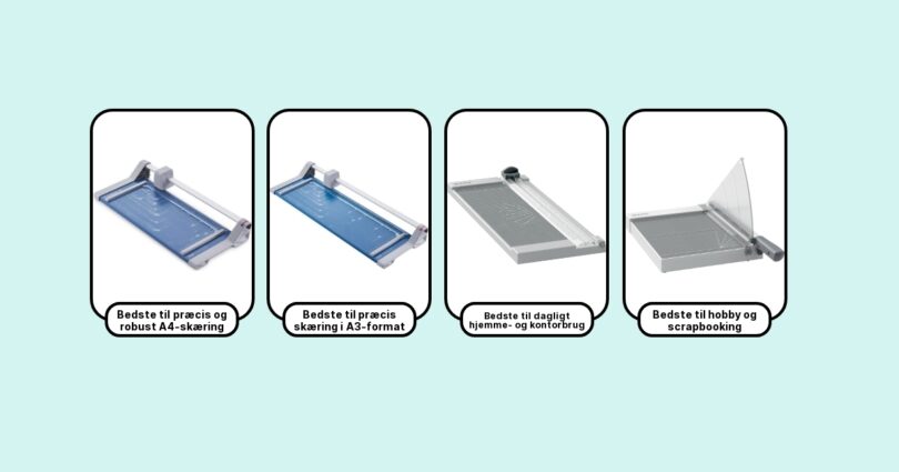 - Rexel ClassicCut CL420: Stabil, stor kapacitet og nem at justere – især god i større arbejdsgrupper.
