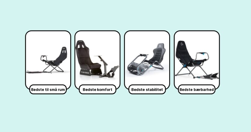Efter utallige timer bag rattet og test af forskellige modeller, har jeg samlet de 7 bedste racingstole, som imponerer på kvalitet, pris, komfort og features: