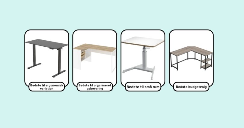 Her har jeg samlet og testet de 7 bedste skriveborde på markedet, så du nemt kan finde det perfekte match til dine behov – uanset om du arbejder stående eller siddende, har brug for masser af plads eller noget mere kompakt.