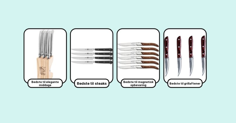 Som person der elsker at nyde et godt stykke kød, ved jeg hvor vigtigt det er med den helt rigtige steakkniv. Jeg har personligt testet et hav af forskellige modeller for at finde de knive, der skærer bedst, ligger bedst i hånden, og som kun gør spiseoplevelsen bedre. Her får du min klare anbefaling af de 7 bedste steakknive, som jeg med ro i sindet kan stå inde for.