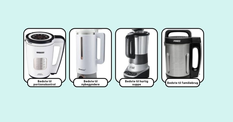Jeg har testet og researchet markedet grundigt og kan især anbefale disse syv modeller: Philips HR2204, Ninja Soup Maker, Bosch VitaPower, Sage The Super Q, Morphy Richards Soup Maker, Wilfa PowerFuel og Electrolux Explore 7. De er alle kraftfulde, pålidelige og lette at bruge, men tilbyder forskellige programmer, kapacitet og mulighed for både kolde og varme blandinger. Jeg anbefaler at læse op på hver model for at finde den, der bedst matcher dine behov og budget.