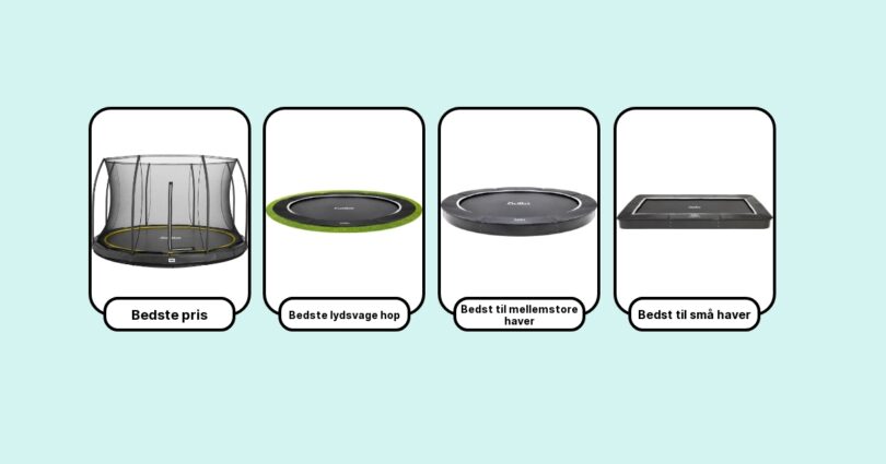 Udvalget er bredt, men der er enkelte modeller, der virkelig skiller sig ud. Personligt er jeg stor fan af Berg Grand Champion 520 InGround, som har vundet flere test og med rette bliver kaldt markedets bedste. Det skyldes især kombinationen af ekstra stærkt stel, suveræn fjedring og den ovale form, der giver masser af hoppeareal uden at fylde hele haven. Men også Salta Royal Baseground og Springfree InGround skiller sig ud. Jeg anbefaler altid, at du vælger en model med solide materialer, UV-resistent springdug og kvalitetsfjedre – det kan mærkes hver gang der hoppes.